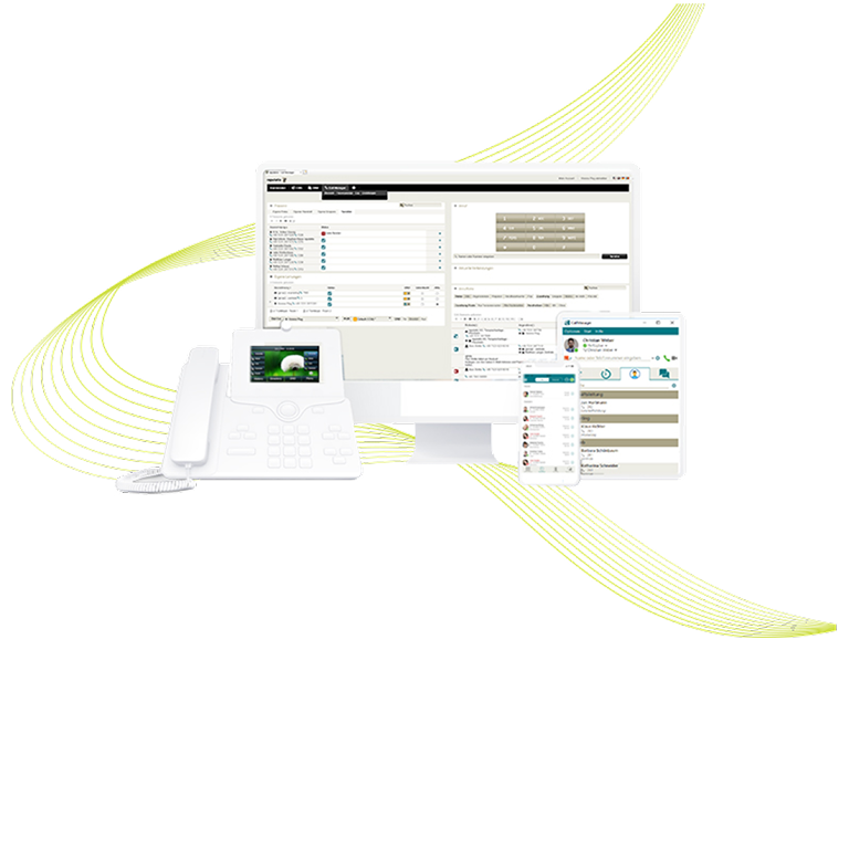 Tischtelefone für schnellen Zugriff auf alle Funktionen, Headsets für freihändiges Arbeiten oder als Softphone (PC/Smartphone) – alles zentral über den CallManger gesteuert, mit Microsoft-Teams Integration.